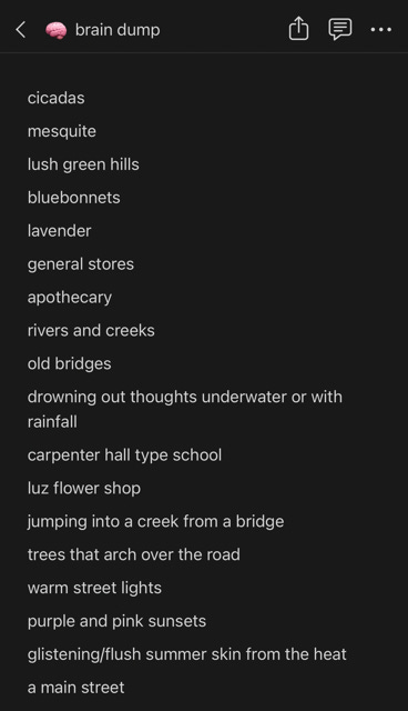 For Cherrywood, I had all my ideas in different places. My notes. My Google Docs. My notes app.
